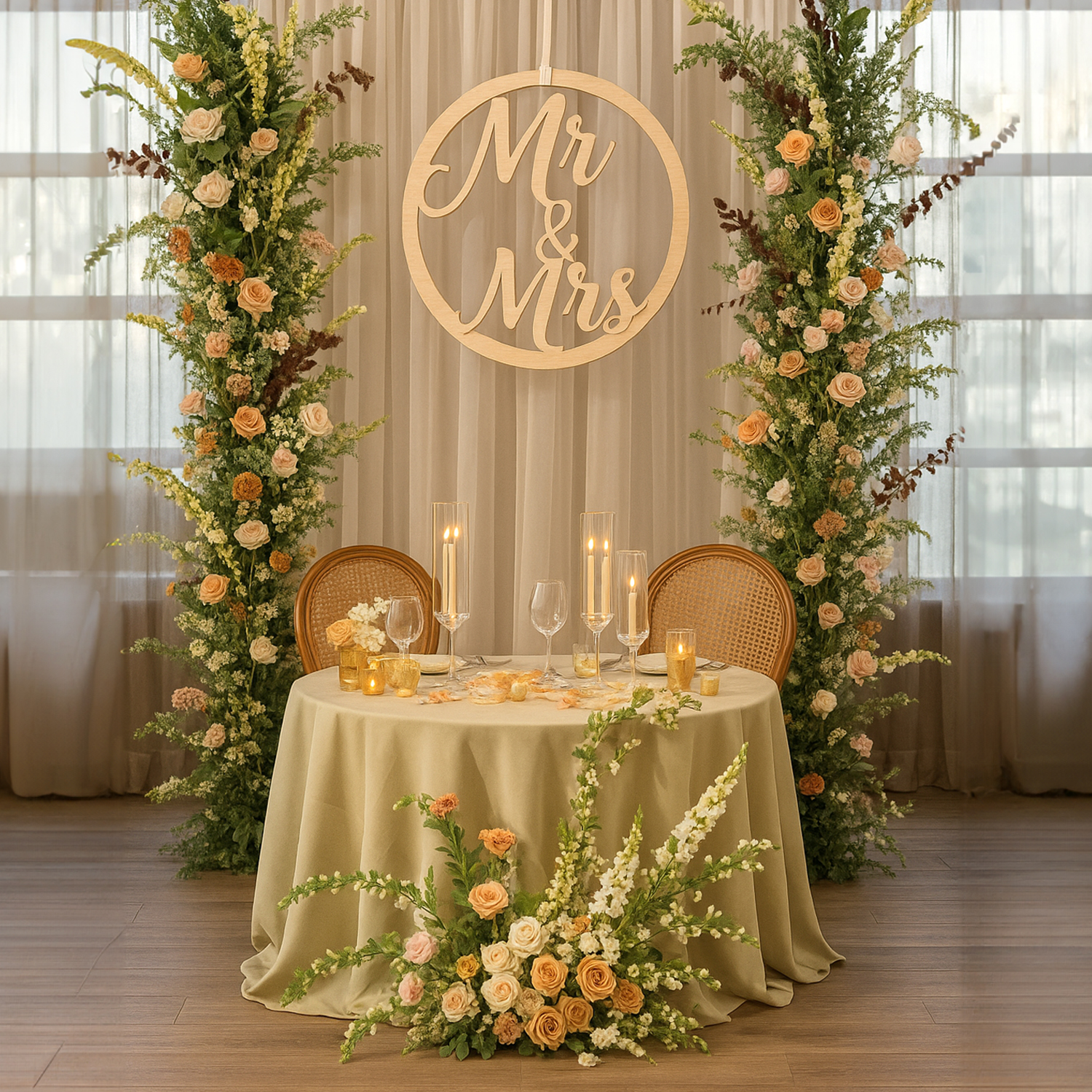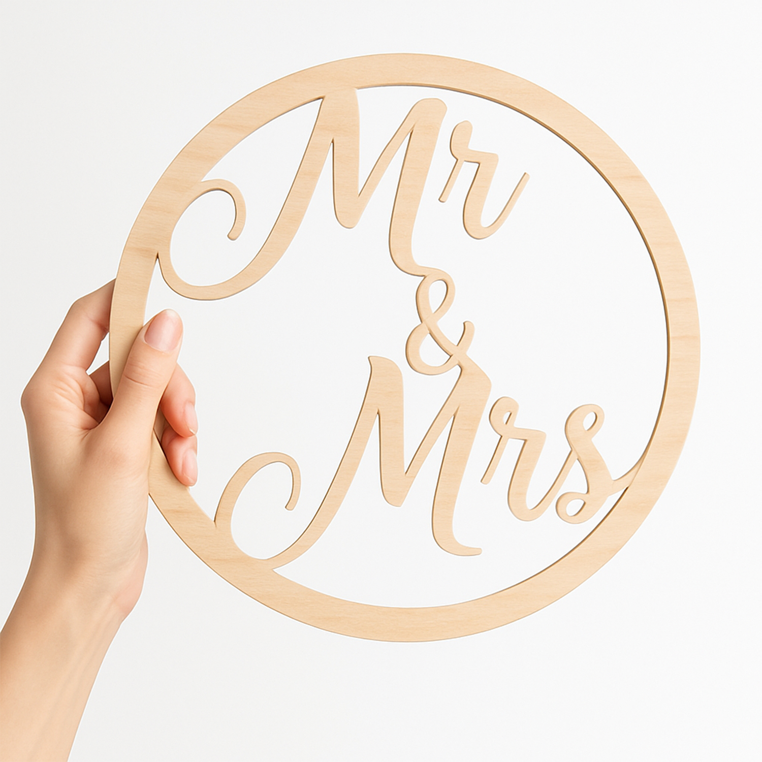 Szukasz wyjątkowej ozdoby na swój ślub? Nasza drewniana dekoracja „Mr & Mrs” to perfekcyjny wybór! Wykonana z naturalnego drewna, dekoracja ma 35 cm średnicy i jest wycinana precyzyjnie laserowo, co zapewnia doskonałą jakość wykonania.