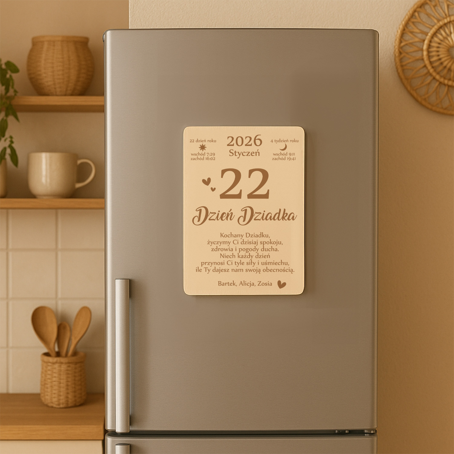 ⭐ Drewniana kartka z kalendarza z magnesem – personalizowany prezent na Dzień Babci i Dziadka
