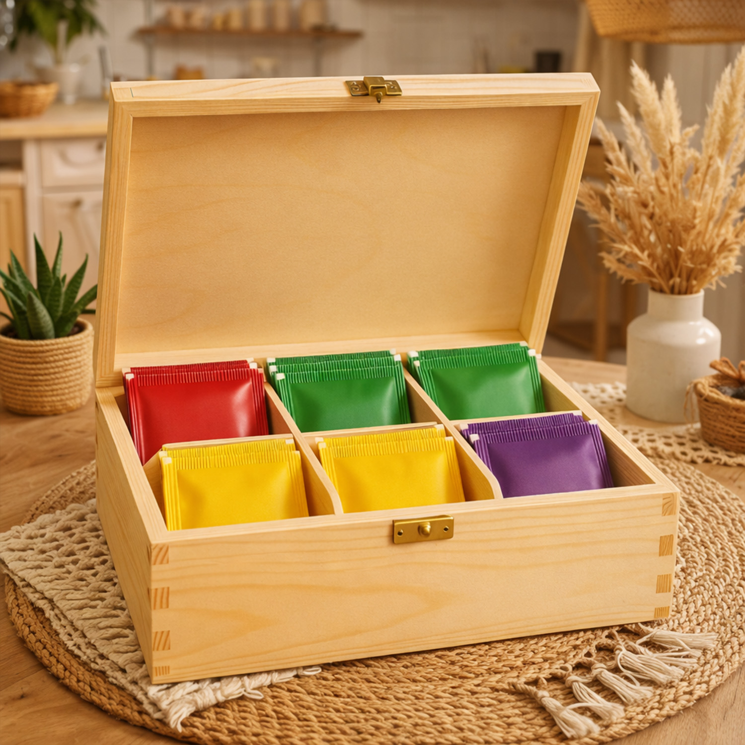 ✅ 6 przegródek – idealna organizacja herbat i dodatków
