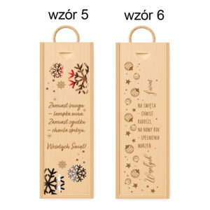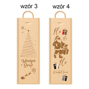 Na froncie skrzynki znajduje się subtelny grawer przedstawiający choinkę z gwiazdką oraz sanie Świętego Mikołaja, co nadaje całości wyjątkowego, świątecznego charakteru.