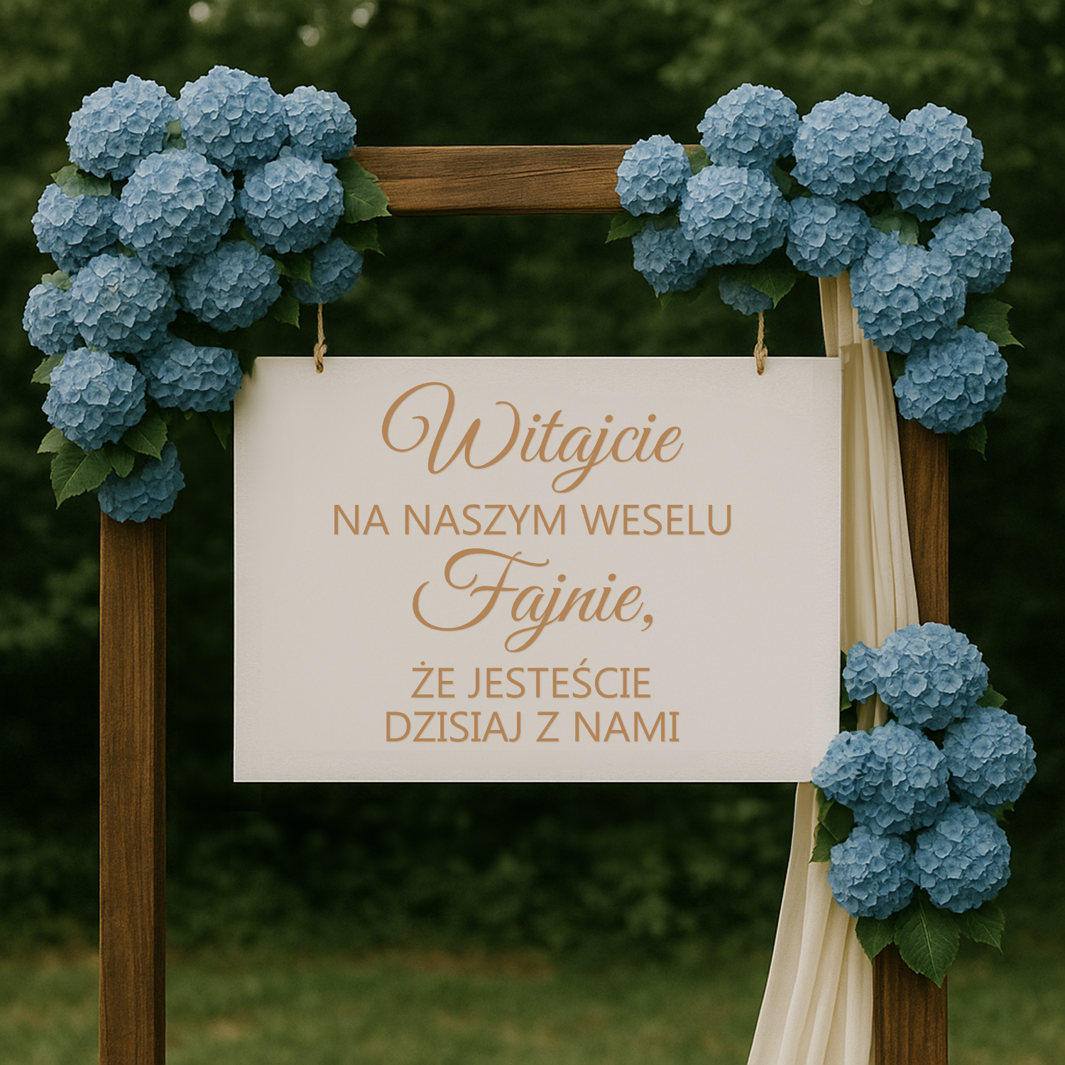 To uniwersalne, serdeczne powitanie pasuje do każdego rodzaju uroczystości – zarówno w stylu rustykalnym, klasycznym, jak i nowoczesnym.