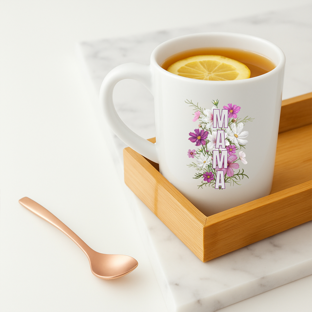 Piękny kubek „MAMA” z kwiatowym motywem – wzruszający prezent na Dzień Matki i inne wyjątkowe okazje. Wysoka jakość wykonania i subtelny design sprawią, że każda chwila przy kawie będzie jeszcze bardziej wyjątkowa.