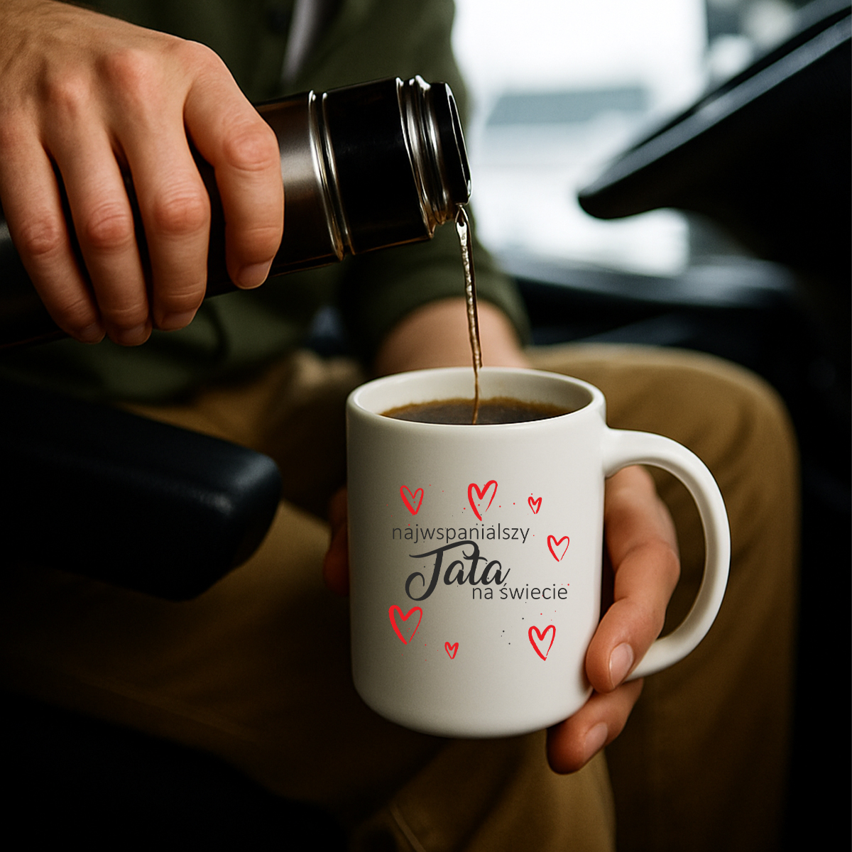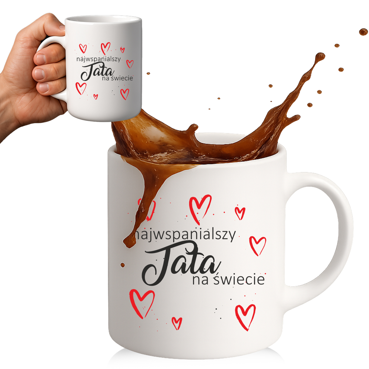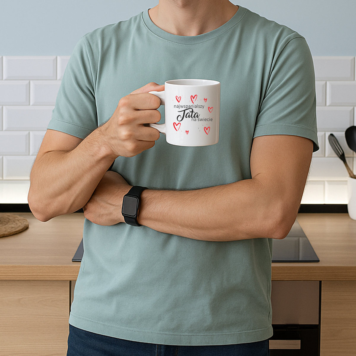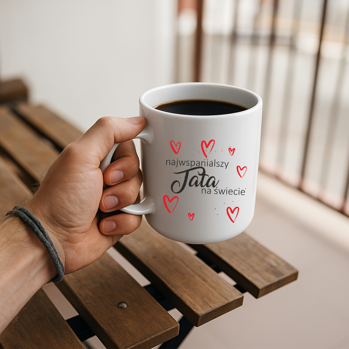 Jeśli Twój tata to niezastąpiona opoka rodziny, cichy bohater dnia codziennego i mistrz w byciu sobą, to ten kubek powstał właśnie z myślą o nim. Z napisem „Najwspanialszy Tata na świecie” oraz ciepłą grafiką z czerwonymi serduszkami, będzie codziennym przypomnieniem, że jest kochany i doceniany – nie tylko od święta.