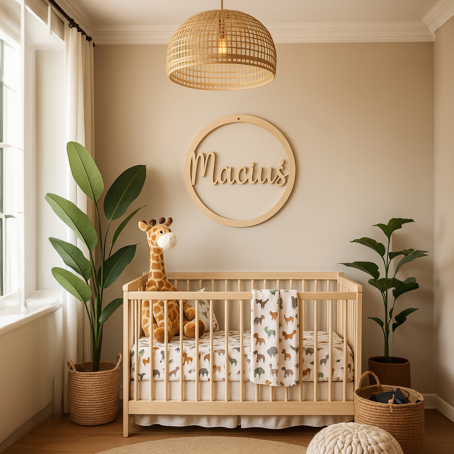 🌿 Drewniana dekoracja z imieniem – minimalistyczna i stylowa ozdoba do pokoju dziecka