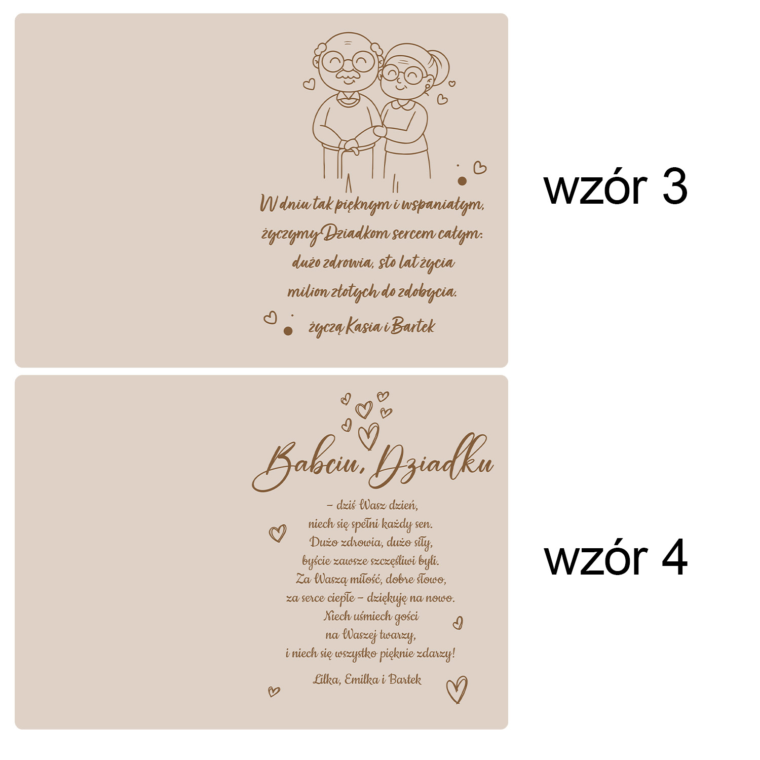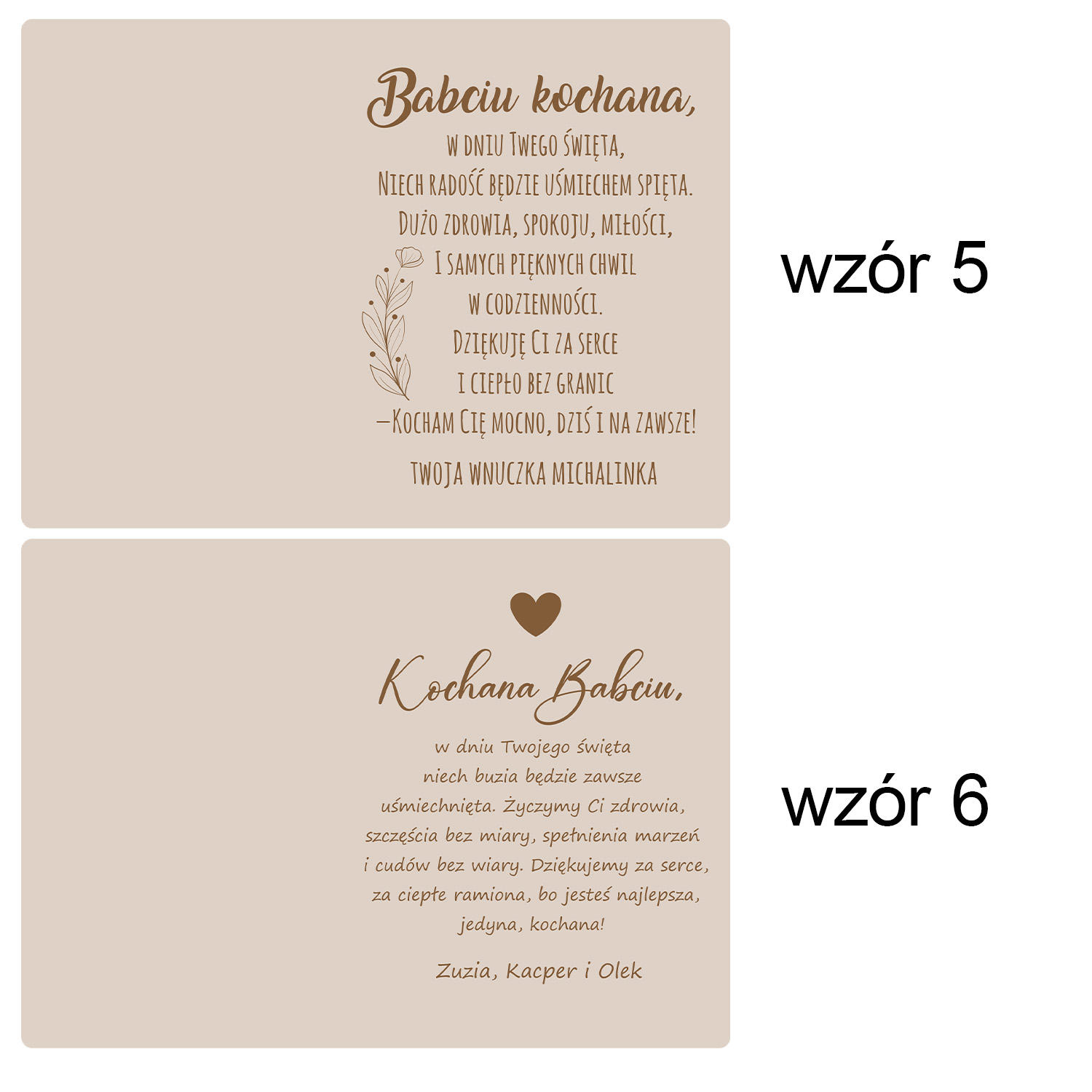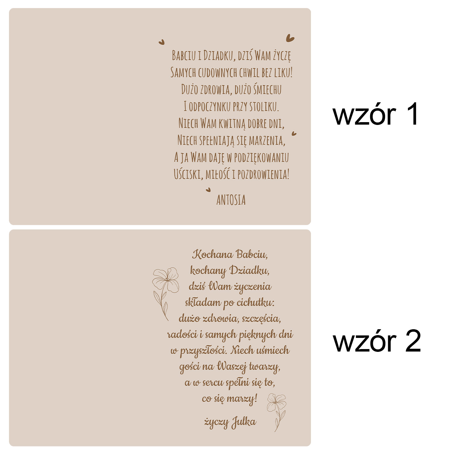 dodać imiona wnuków (lub własną dedykację – jeśli oferujesz taką opcję),