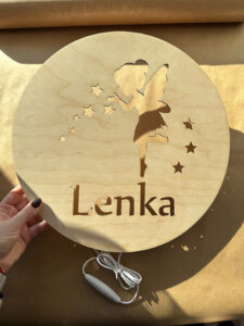 Personalizowana lampka nocna LED ze sklejki brzozowej 36 cm – imię dziecka, barwa ciepła i zimna