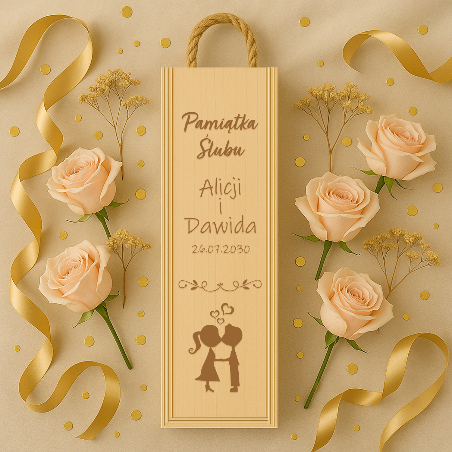 Podaj imiona nowożeńców oraz datę ślubu podczas składania zamówienia.
