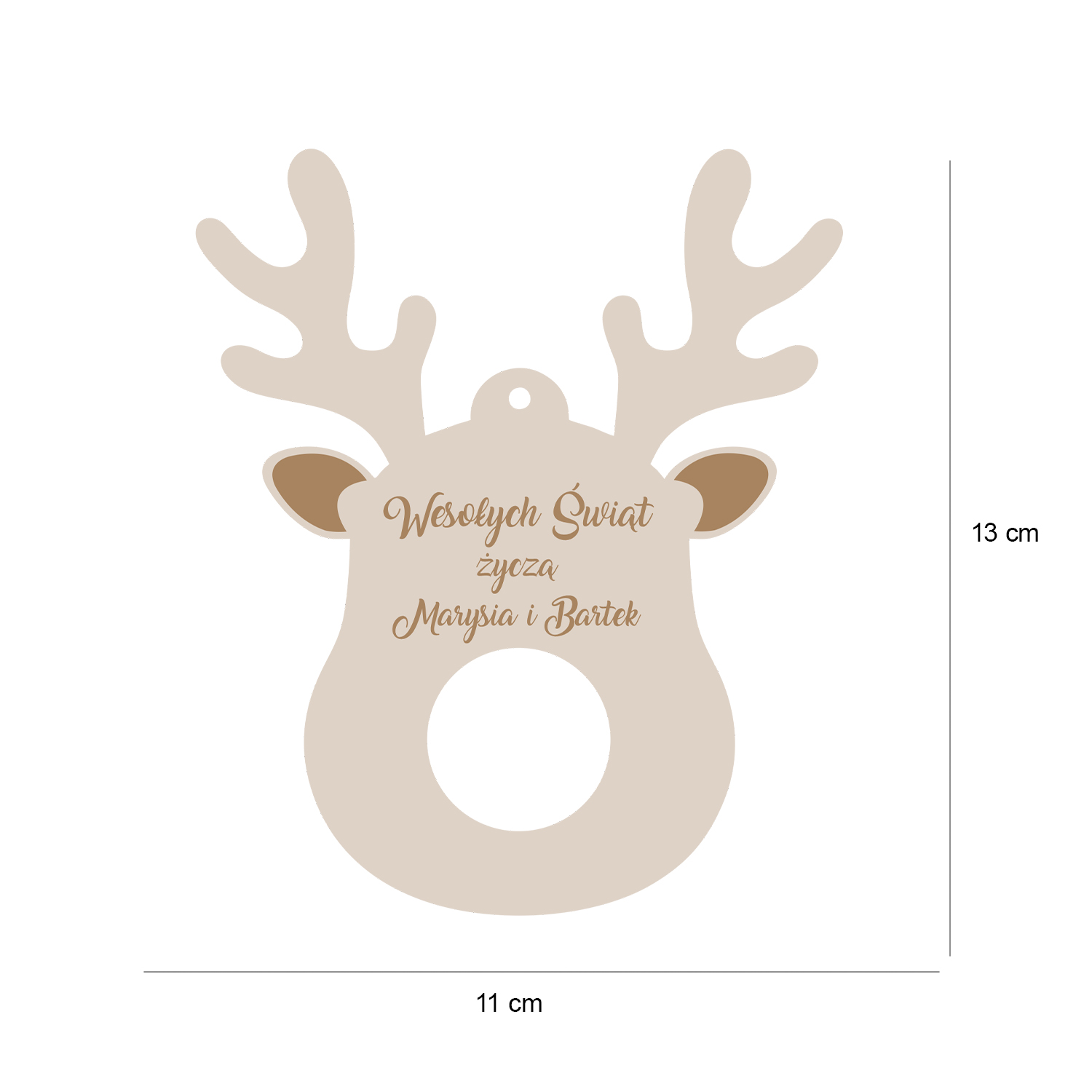 Urocza zawieszka w kształcie renifera to wyjątkowy sposób, by dodać Twoim prezentom i choince świątecznego uroku! Wykonana z naturalnego drewna, z możliwością personalizacji – imieniem, życzeniami lub logo Twojej firmy.