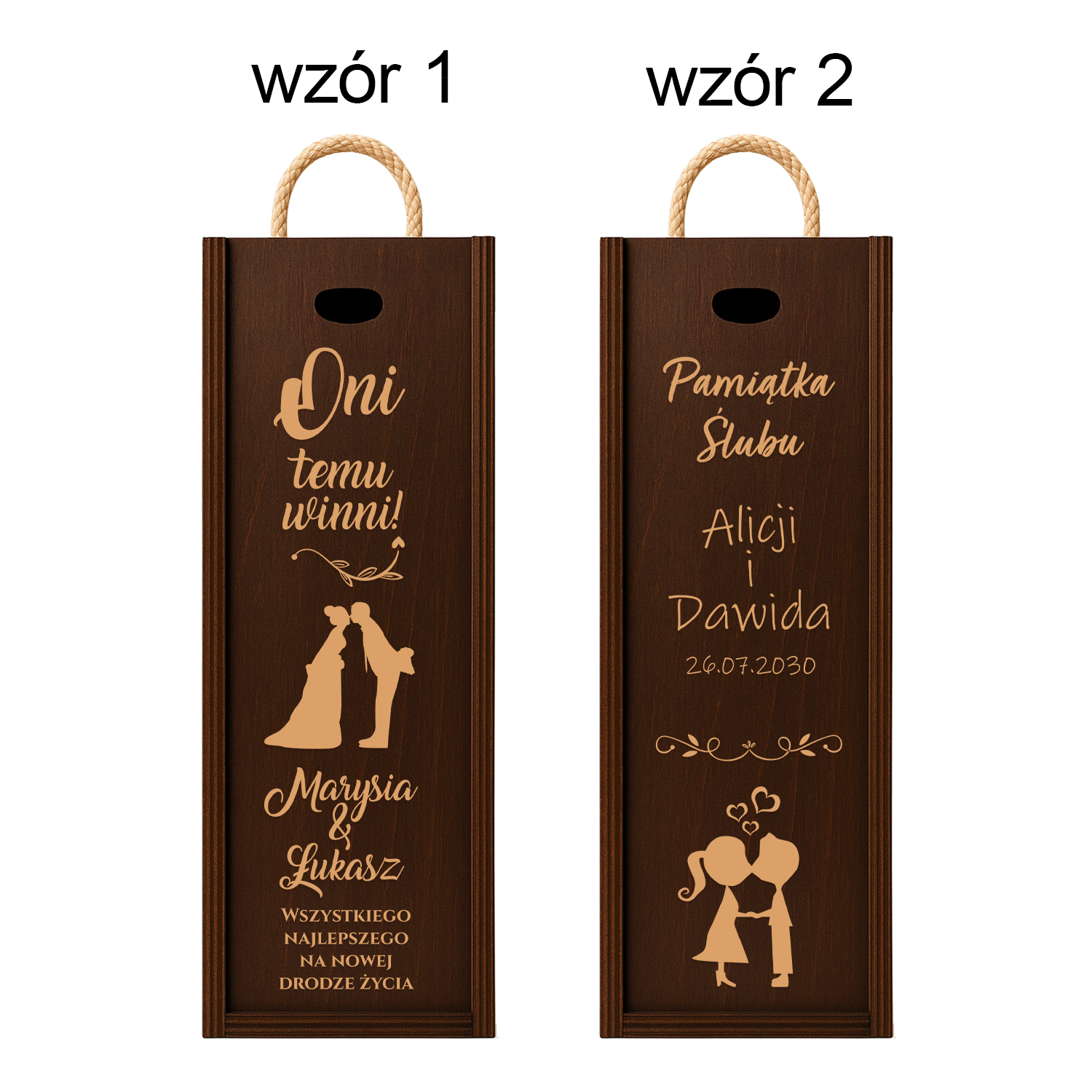 Szukasz upominku, który zostanie w sercu na zawsze? 🎁 Drewniana skrzynka na wino z grawerem „Razem na zawsze” to wyjątkowy prezent, który łączy romantyzm z elegancją. Idealna na ślub, rocznicę lub zaręczyny. Co więcej – możesz ją spersonalizować imionami pary, dodając niepowtarzalny charakter.