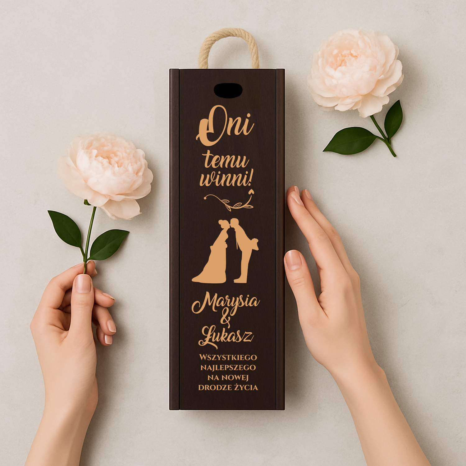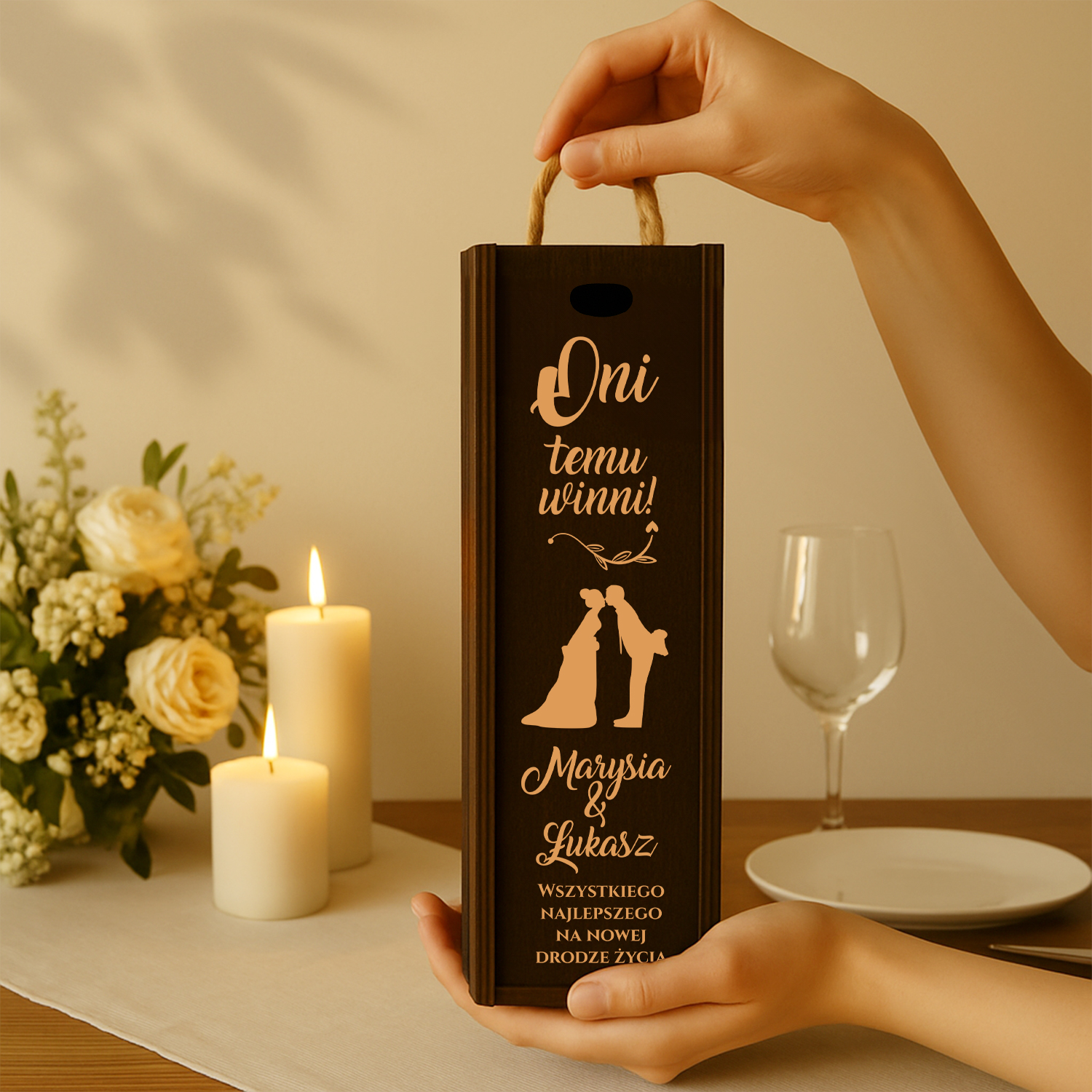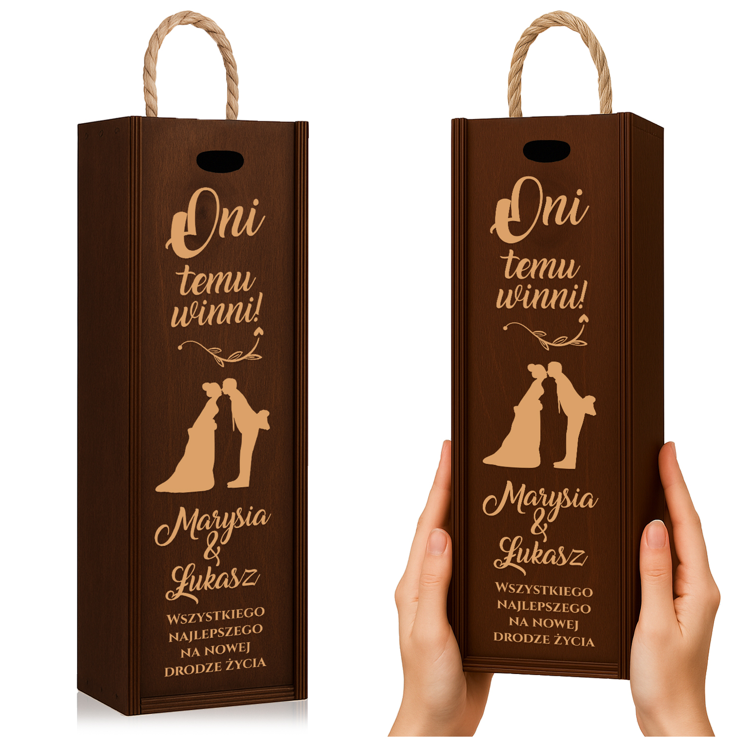 🍷 Elegancka skrzynka na wino z personalizowanym grawerem – idealny prezent na ślub, rocznicę, urodziny lub inną wyjątkową okazję. Wykonana z wysokiej jakości drewna, z estetycznym, trwałym grawerem, który można dowolnie personalizować.