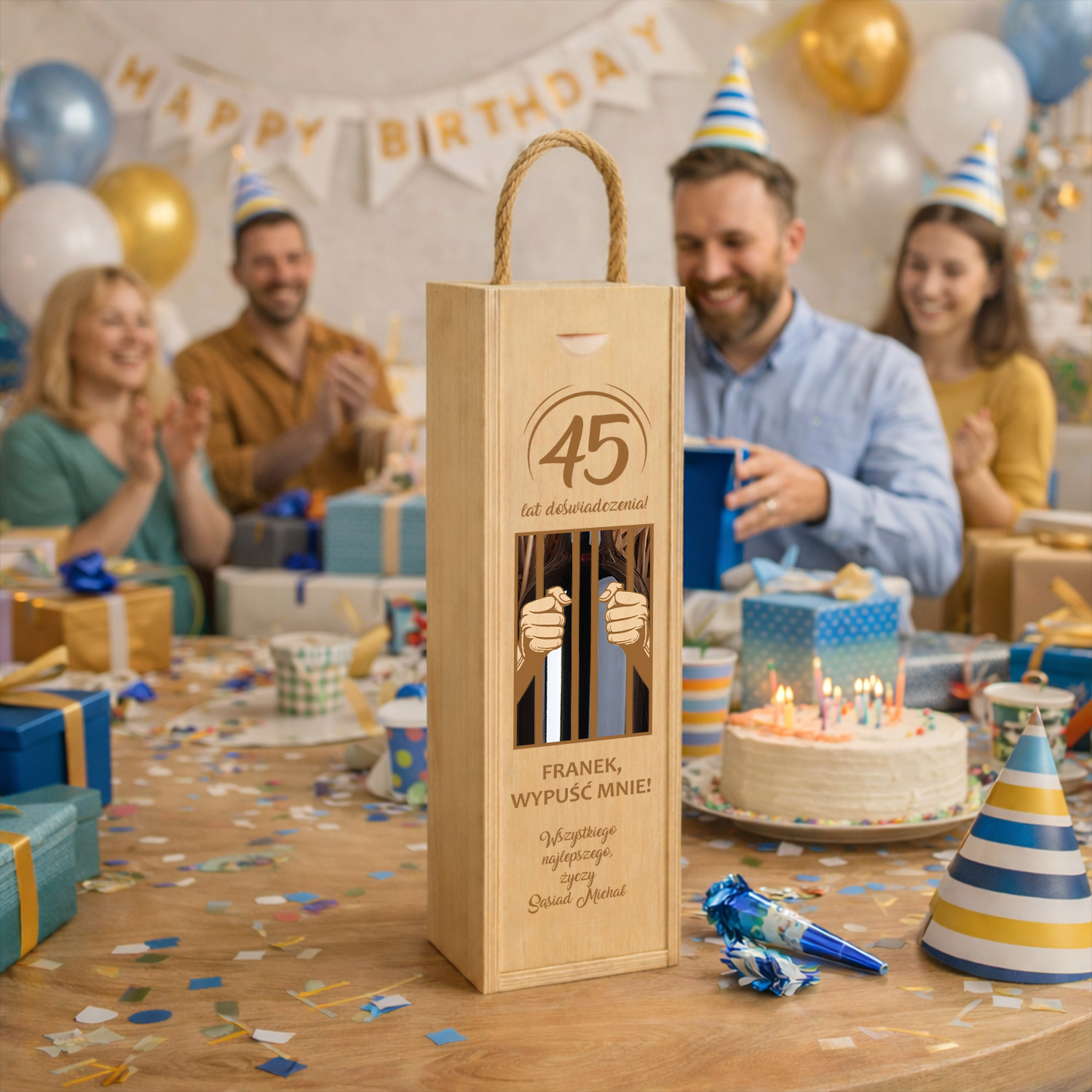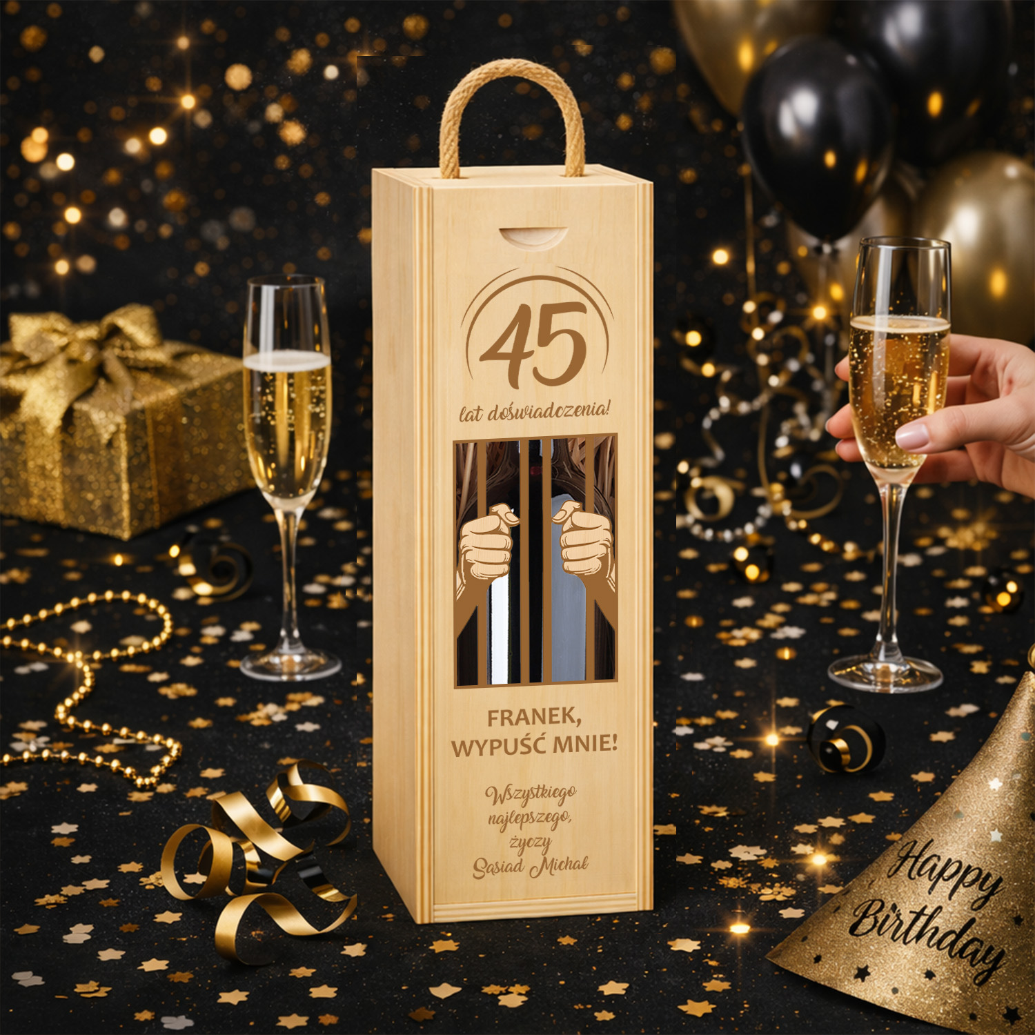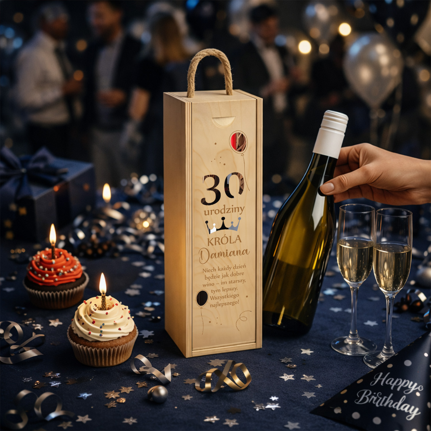 Elegancka drewniana skrzynka na wino z możliwością personalizacji to wyjątkowy prezent urodzinowy na każdą okazję – od 18 po 70 urodziny.