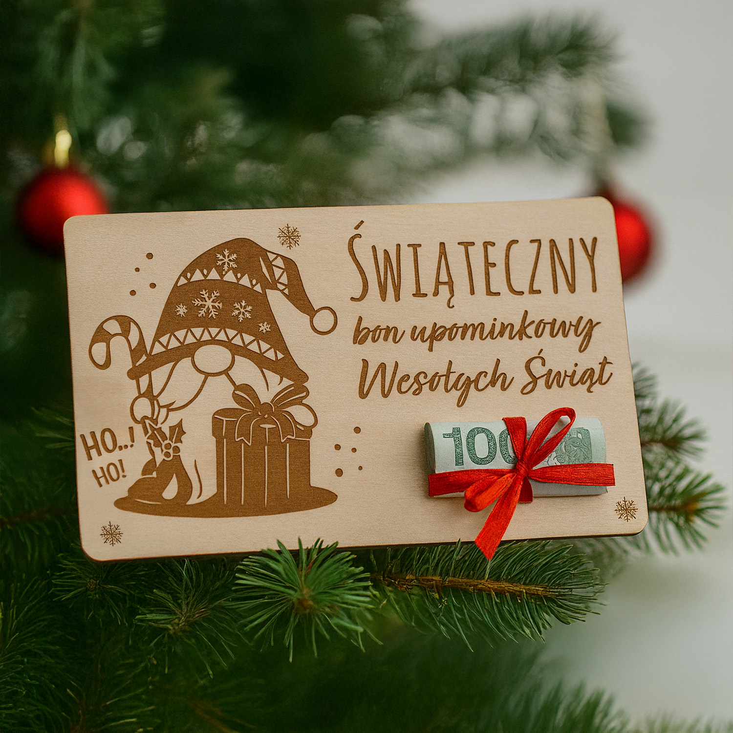 Ten świąteczny bon podarunkowy to nie tylko oryginalny sposób na przekazanie pieniędzy, ale też piękna pamiątka, która może zdobić dom w czasie świąt. Doskonale sprawdzi się jako prezent dla rodziny, przyjaciół, współpracowników lub nauczycieli.