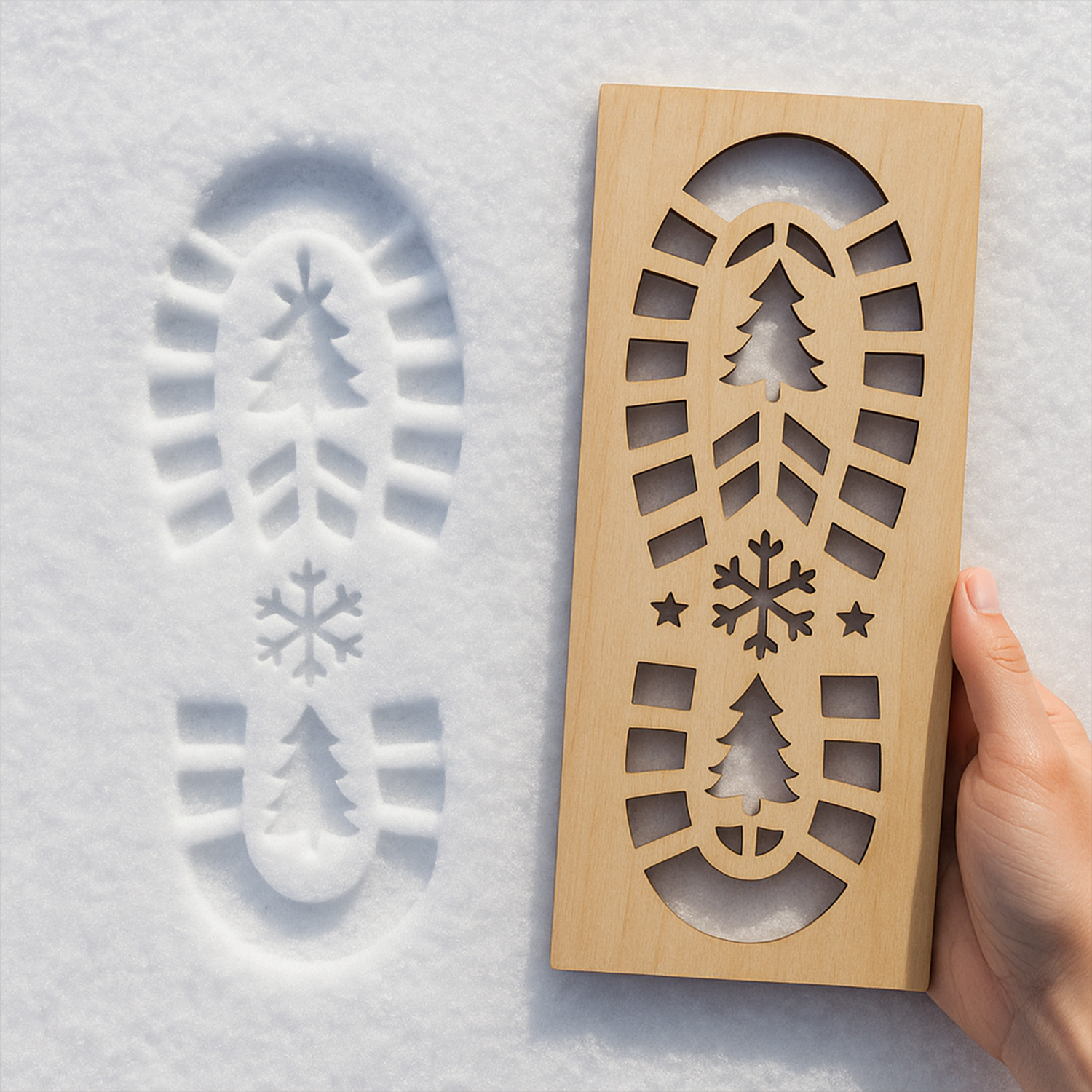 Drewniany szablon śladów Mikołaja to wyjątkowy gadżet, który pozwoli Ci zostawić realistyczne odciski butów Świętego Mikołaja – na śniegu, mące, brokacie czy sztucznym pyle. Idealny sposób, by wywołać zachwyt i uśmiech na twarzach dzieci w wigilijny poranek.